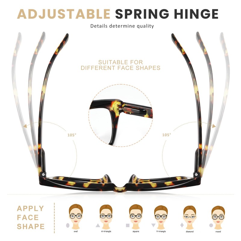 - ?? Spring Hinge Features a comfortable and lightweight design with a flexible spring hinge frame that adapts to fit any face shape securely.