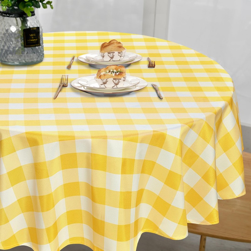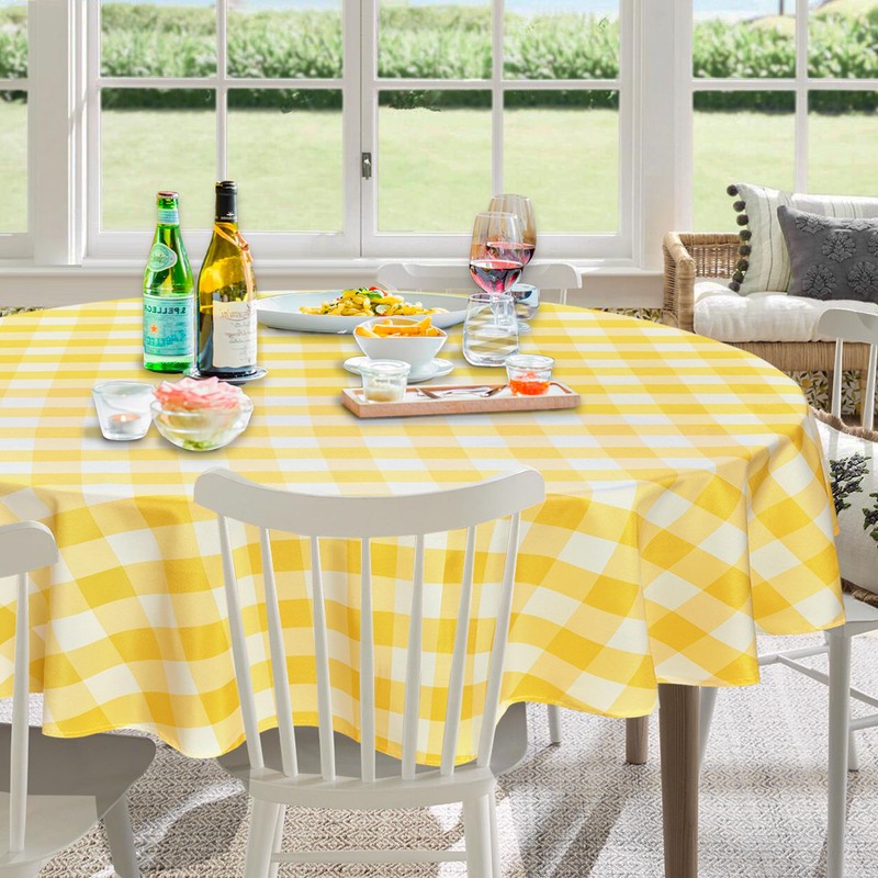 XWZO Checkered 90 Inch Round Tablecloth - Waterproof and Dustproof Washable Plaid Table Cloth for Dining Party, Outdoor Picnic and Camping, Decorative Gingham Table Cover, Yellow and White