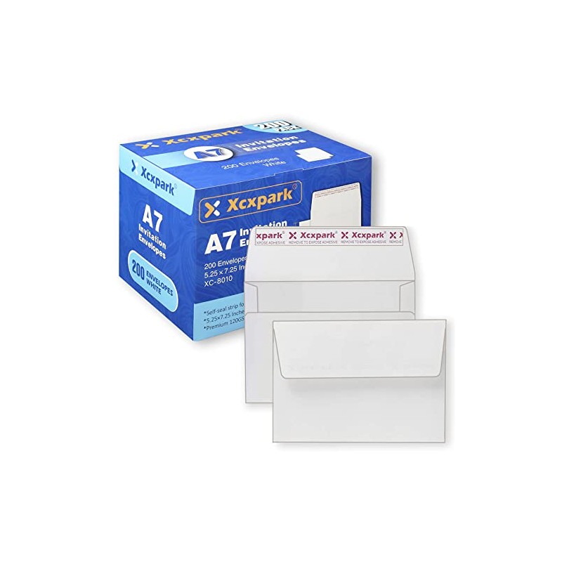 Xxcxpark 200 Qty Printable A7 Invitation Envelopes 5.25X7.25 inches Cards, Self Seal 120GSM white Paper Envelopes for Invitations, Papers, Photos, Documents, Wedding, Baby Shower, Easy to Seal