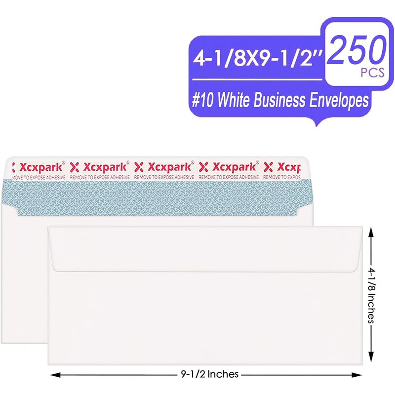 Excellent performance in invisibility, durability and self-sealing. Xxcxpark 250 PCS #10 security envelopes are made of high quality material to stay flat and straight and keep the inside documents safe all the time, no damage, size 4-1/8 x 9-1/2 inches, great for mailing pictures, photos, documents, papers, files, invitation cards or any other items.