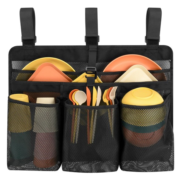 - 【Camping Dish Drying Bag】The mesh dish drainer is made from 600D oxford material, can store pots, pans, cups, forks, plates, bowls, utensils, and more. Strong and breathable reinforced mesh netting that dries quickly. Making RV camping and travel much easier.