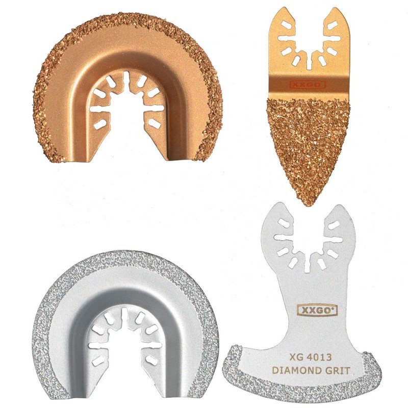 XXGO 4 Pcs Diamond Carbide Oscillating Multi Tool Semi Circle Finger Segment Swing Grit Grout Saw Blades XG4004