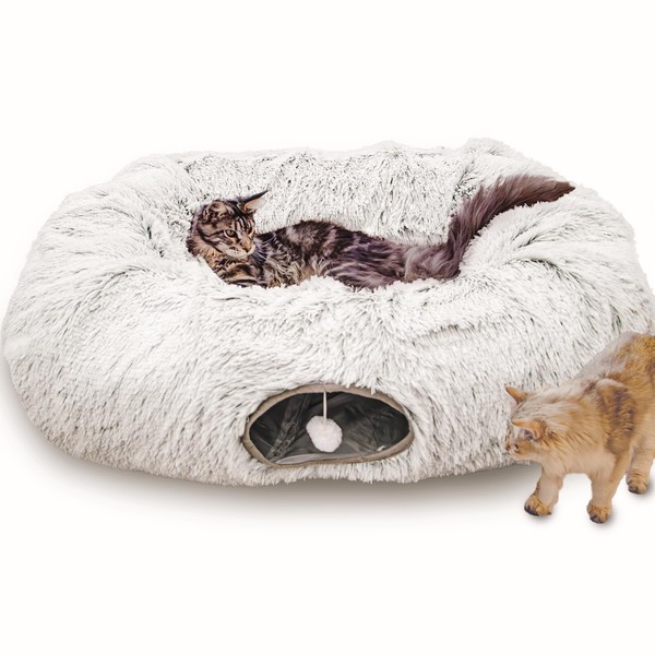 XxingSheep Extra Large Cat Tunnel Bed for Indoor Cats Peekaboo Cat Cave Donut with Center Mat