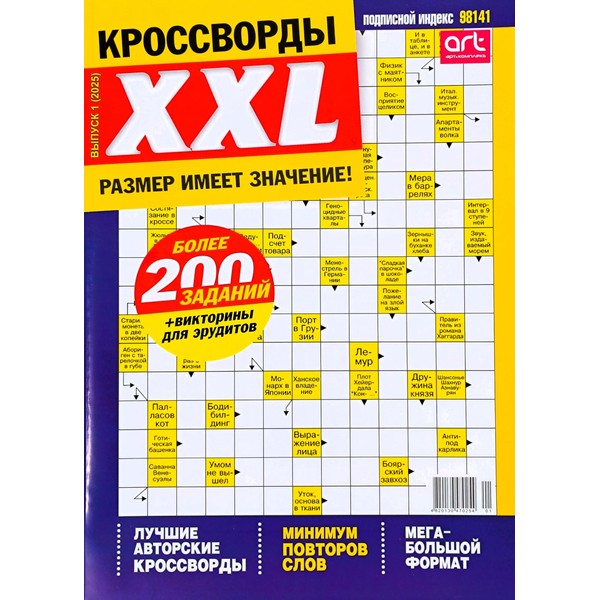 XXL Crosswords 1/2025 Scanwords Magazine in Russian Language Word Logic Puzzle Big Collection Sudoku Kakuro Keywords Fillwords Anecdote Quiz Book 146 Pages Кроссворды Сканворды Журнал на Русском Языке