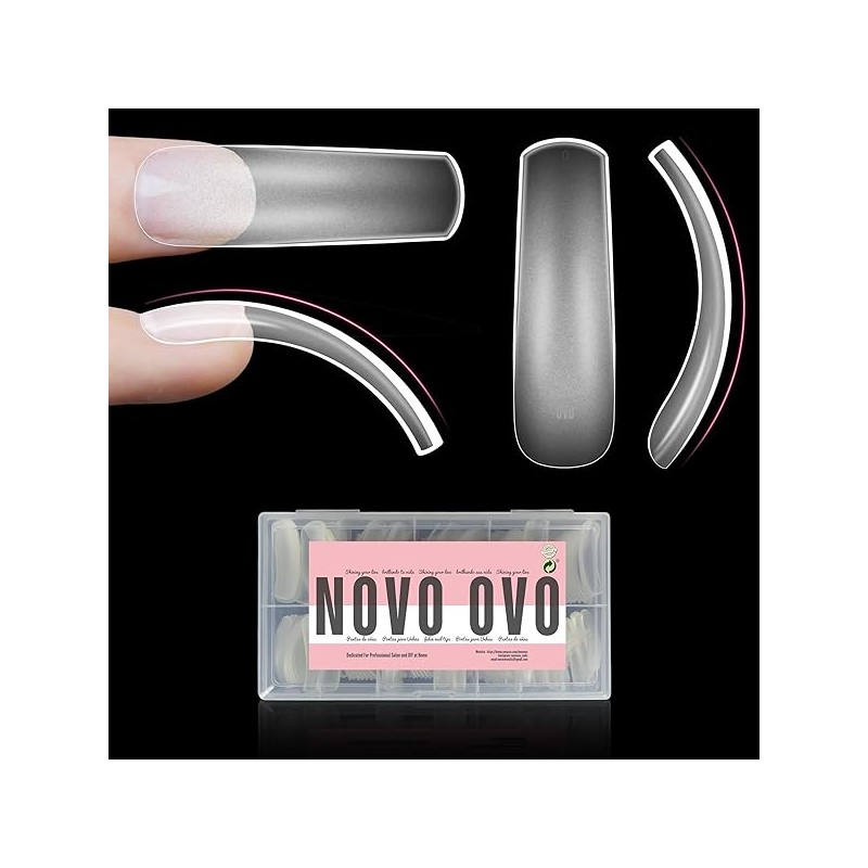 XXL Curved Nail Tips Press on Full Cover, Tapered Square Gel x Extra Thick Long XL Acrylic Fake Nails Extension kit, Clear Pre-etched Soft French False Nail 12 Sizes 300pcs