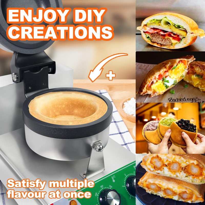 • Widely used:This commercial ufo hamburger ice cream waffle maker is highly suitable for burger shops, bakeries, ice cream parlors, dessert shops, and cake stores