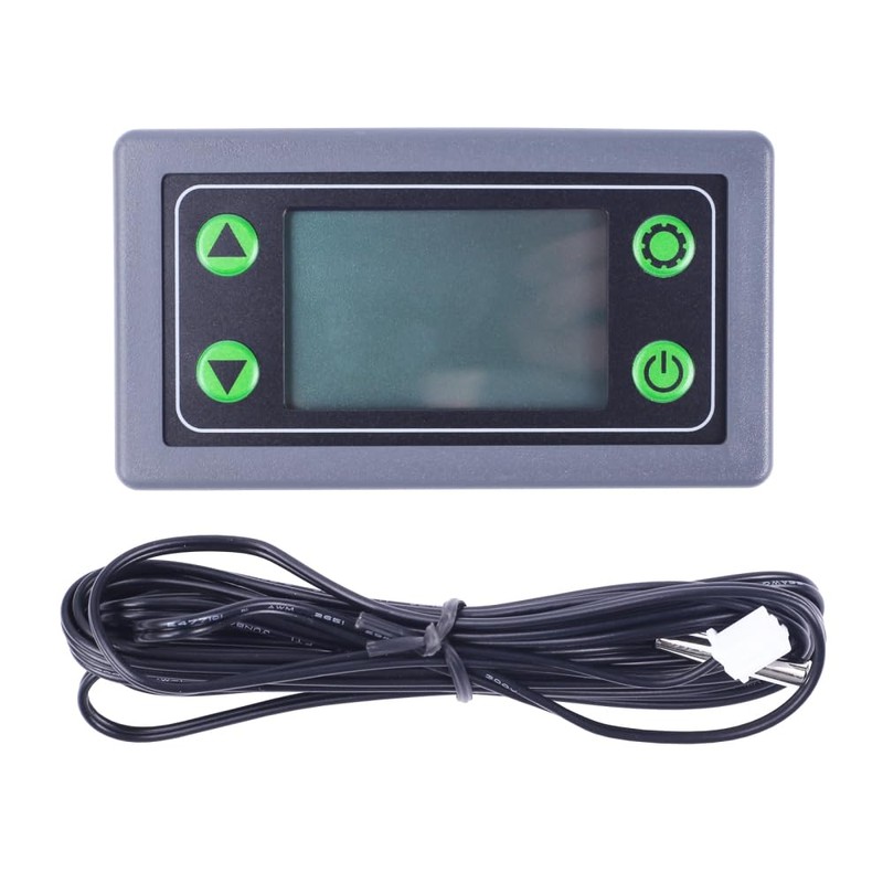 - Features: 1>.Heating/cooling automatic control 2>.Celsius and Fahrenheit switch display 3>.Automatic control output status 4>.Simultaneous temperature detection 5>.Automatic recognition working mode 6>.High and low temperature automatic alarm 7>.Automatic data saving 9>.High temperature measuring -40C~110C or -40F~116F 9>.ABS standard size housing 10>.30A Relay Voltage Output 11>.HD LCD Display Screen 12>.Power saving mode 13>.Programmable display temperature calibration
