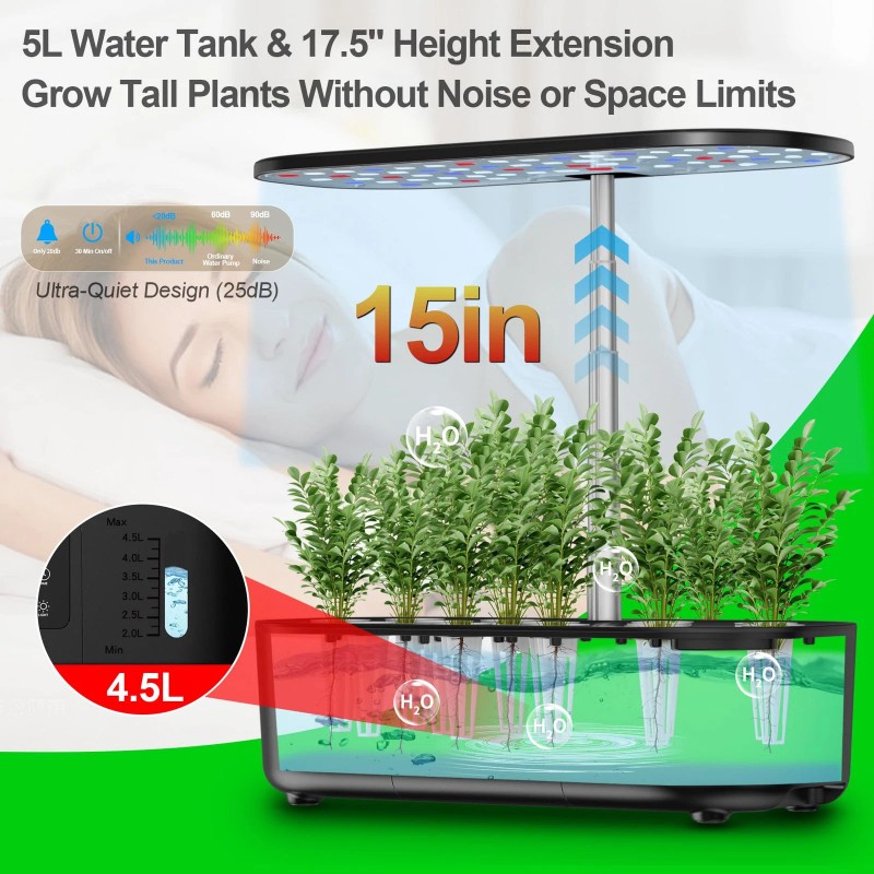 Xyingshine Hydroponics Growing System Kit Indoor Herb Garden with Adjustable ...