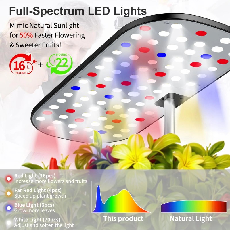 LCD Touch Panel & Ultra-Quiet Smart Operation – Effortlessly control your herb garden via the intuitive interface. while the 5L water tank ensures fresh circulation every 30 minutes. Energy-efficient LED panels slash power costs by 40% versus traditional setups.