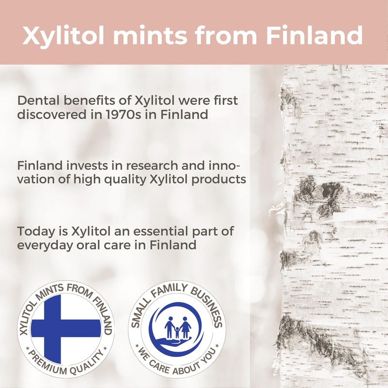 - From Finland – Happy Teeth Xylitol mints are produced in Europa, in Finland. Finland was the first country to discover the dental benefits of Xylitol. Finland produces high-quality Xylitol products according to Nordic standards. Xylitol mints have made the Nordic people happy for a long time.