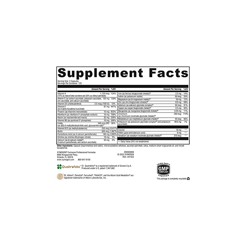 XYMOGEN ActivNutrients with Iron and Copper - Multivitamin Multimineral for Wellness, Immune, Energy and Mood Support - Chelated Minerals + Active B Vitamins with Folate (240 Capsules)