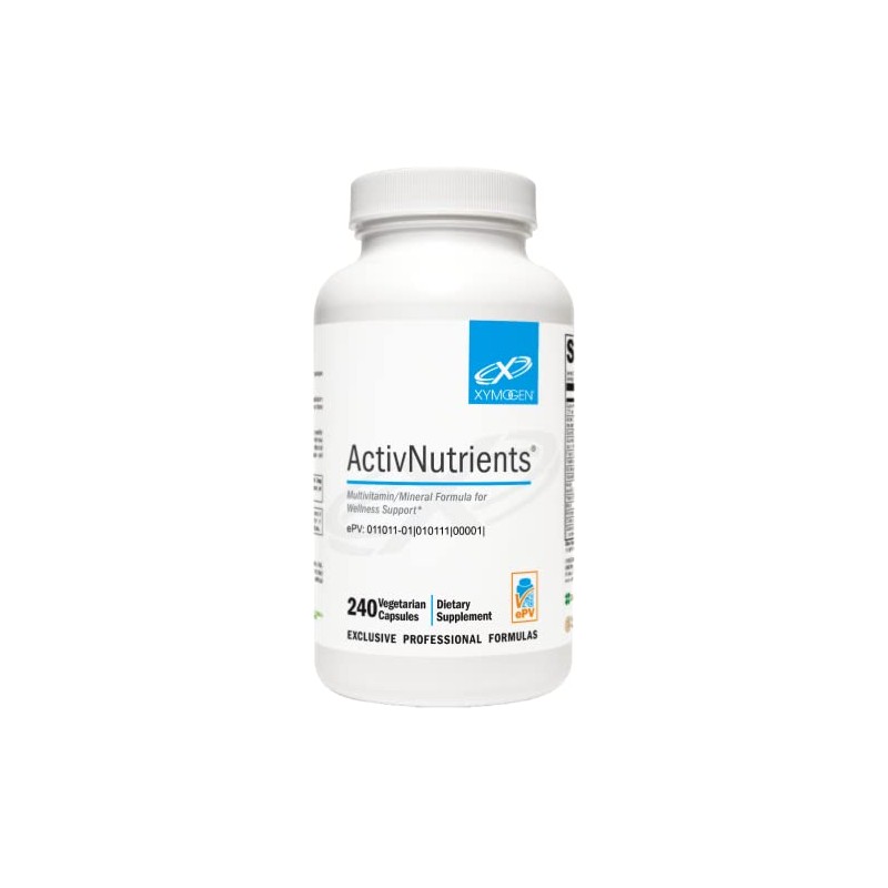ActivNutrients (with iron and copper) features a premium, multivitamin/mineral blend of high-quality vitamin and mineral forms selected for optimum utilization. The comprehensive nutrient profile is delivered in a vegetarian capsule and supports foundational wellness; provides antioxidant activity with vitamins C and E, selenium, and beta-carotene; and supports detoxification.*