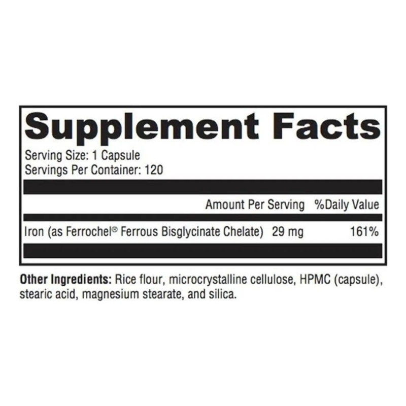 El suplemento de Hierro de Xymogen se presenta en un frasco con 120 cápsulas sin sabor, diseñado para proporcionar una fuente altamente biodisponible de hierro. Este producto está formulado para apoyar los niveles saludables de hierro en el cuerpo, combatir la deficiencia de hierro y promover la energía y el bienestar general, siendo apto para personas de 18 años en adelante.