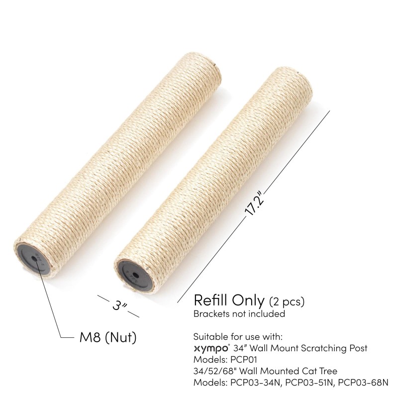 17" Refill Pack for 34" Wall Mounted Sisal Scratcher (Model:PCP01), 34/52/68" Wall Mounted Cat Tree (PCP03)
