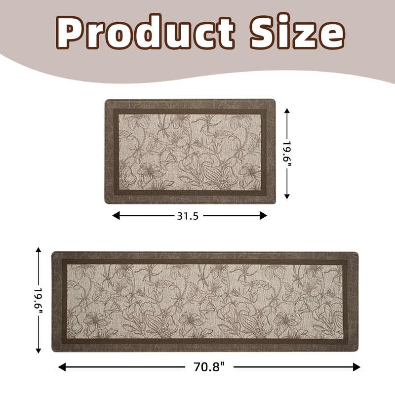 XYSaiXuan Kitchen Mat Set of 2 Non-Slip Floor Rugs, Anti Fatigue Kitchen Carpet Waterproof Farmhouse Kitchen Floor Rugs for Office Sink Laundry Floor, Brown,19.6"x31.4"+19.6"x70.8"