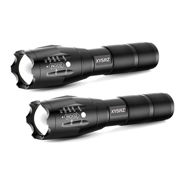 XYSRZ Military Grade Tactical Flashlight Single Mode Zoomable LED Flashlight for Camping Hiking Emergency, 2 Pack