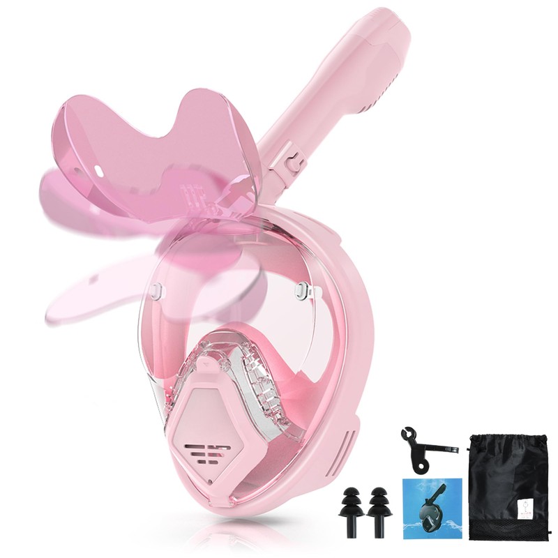 Xyuee Devilfish Full Face Snorkel Mask Kids Pink S, Dry Top System Snorkeling Gear with Foldable Sunglasses, 180 Degree Panoramic View Snorkel Set, Scuba Diving Masks Anti-Leak & Anti-Fog