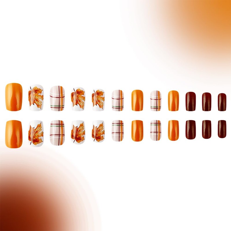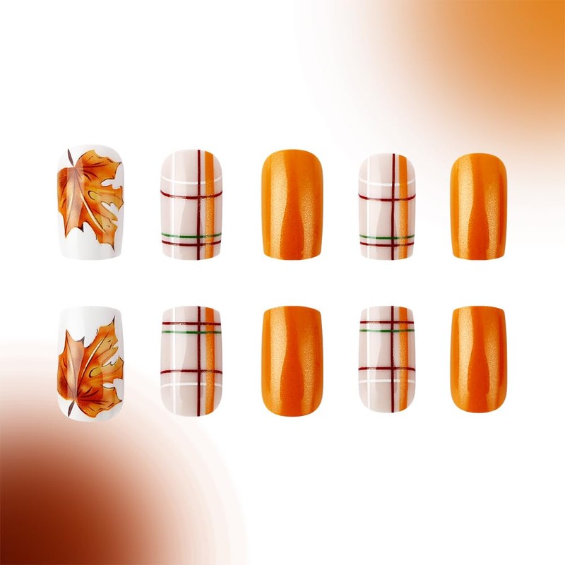 XZMeiLun Fall Press On Nails Short Square, Autumn Acrylic Press On Nails, Lattice Maple Leaf Designer Reusable Fake Nails, Glue On Nail Press Ons for Hallows' Day Women, Nails Press Ons