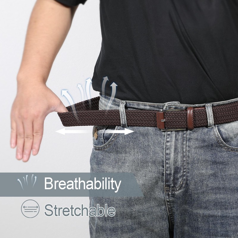 XZQTIVE Braided Stretch Belt Mens Gift Elastic Woven Belt for Golf Casual Pants Shirts Jeans