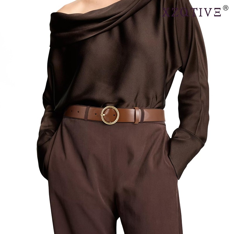 XZQTIVE - Cinturones de piel para mujer, para jeans, vestidos de talla grande, cinturones de cintura para mujer, cinturón de piel casual con hebilla dorada y café
