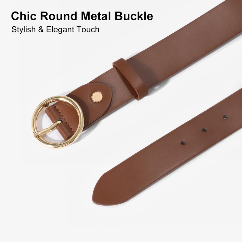 XZQTIVE - Cinturón de piel para mujer, con hebilla de círculo, color dorado, cinturón de cintura para mujer, para jeans, vestidos, Café, Small: fits waist from 25"-29"