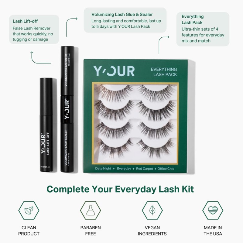 Y'OUR Luxury Lashes Duo | Salon-Quality Lash Falsies & Long-Lasting Lash Glue | Cruelty-Free, Lightweight & Reusable | Comfortable All-Day Wear | Perfect for Every Eye Shape | Trusted by Professionals