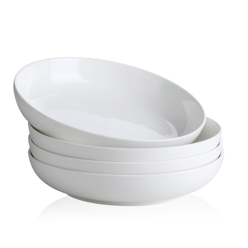 Y YHY Pasta Bowls, 22 Ounces Salad Ceramic Bowl Plate Set of 4, 7.8 Inch Porcelain Pasta Bowls for Serving Dinner and Salad,Wide and Shallow Bowls Set, Microwave and Dishwasher Safe, White