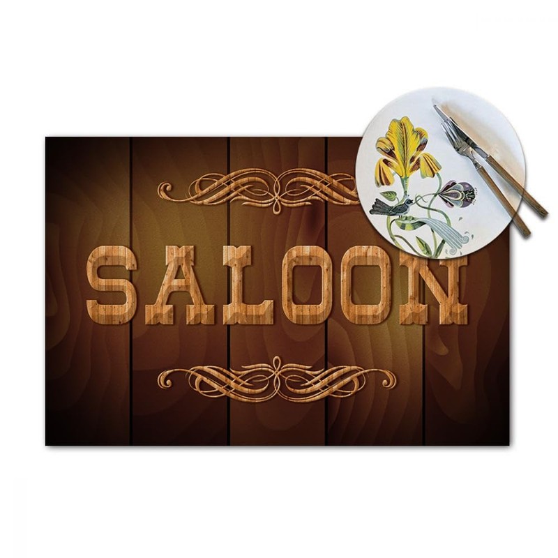 Y YIHANGBEST Wooden Sign Saloon Dining Table Placemats Western Country Cowboy Bar Pub Cloth Linen Wipeable Placemats Table Pads Indoor Table Protectors Non Slip,Set of 4 12 * 18 Inch