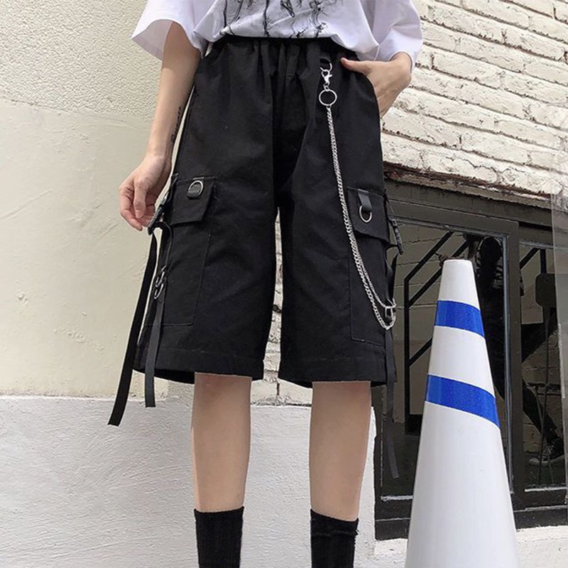 Y2k Cargo Shorts Punk Clothes Summer High Waist Shorts Harajuku Cargo Short Pants Emo Pants