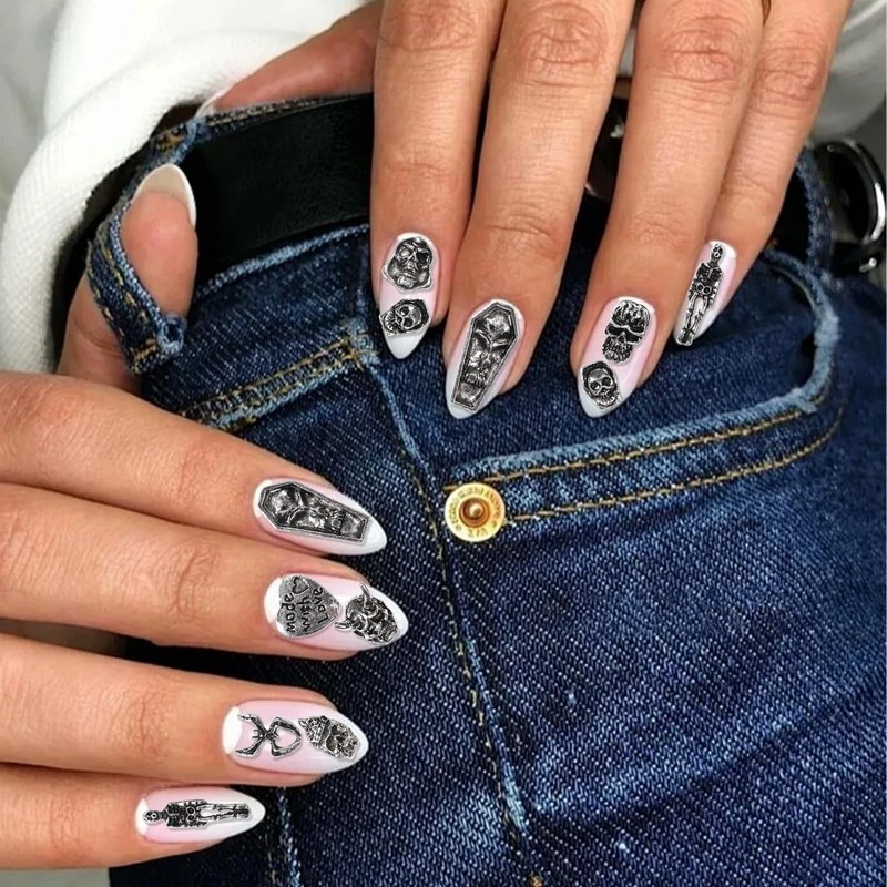 - Embrace your inner emo aesthetic with these skull nail charms that exude a sense of rebellious style and individuality.