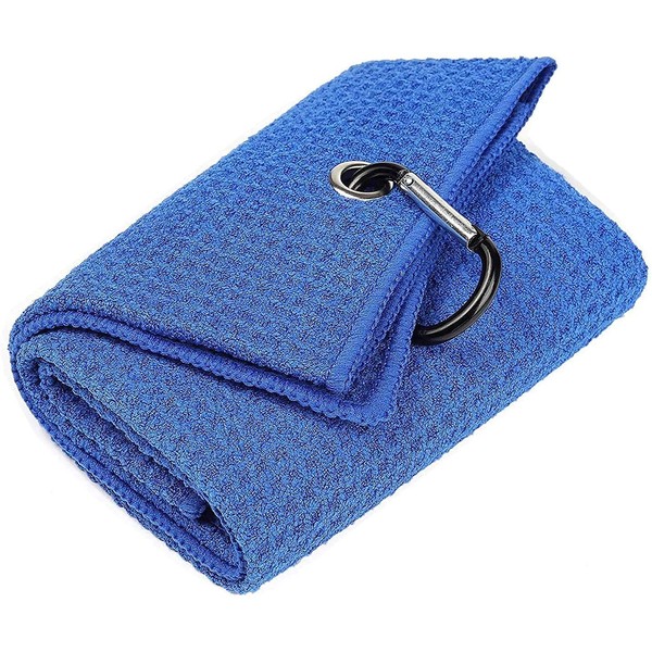 Y8HM Premium Microfiber Waffle Pattern Tri-fold Golf Towel with Carabiner Clip for Hanging on Golf Club Bag (Blue)