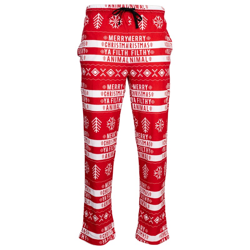 - Iconic Holiday Design: Featuring the famous line “Merry Christmas Ya Filthy Animal,” these pants bring a playful, nostalgic touch to your holiday wardrobe, paired with a red and white snowflake pattern for the ultimate seasonal style.