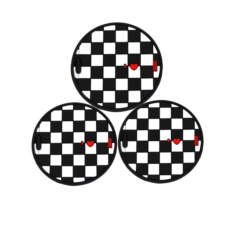 YaaGoo for MINI Cooper R55 R56 R57 Car Cup Holder Coaster Non-slip Mat Pad Heart Pattern(Checker,3pcs)