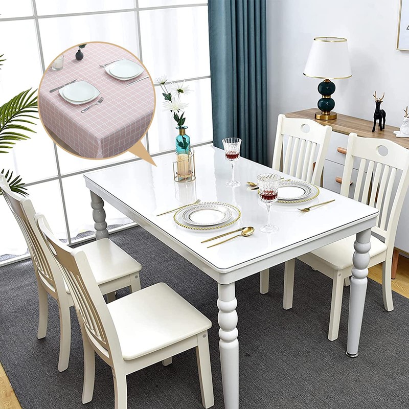 Product descriptionMaterial:Plastic Tablecloth made of non toxic,chlorine free,no chemical odor,BPA free PVC Size:Each tablecloth is about 54 Inch x 70 Inch(137 x 180 CM)[Reusable - How to do]:The PVC table cloths protector are primarily used as disposable items,but it also can be reused if you use the table coverings with care. Any stain on the table overlays can be wiped off with a cleaning cloth and rinsed it up with water before drying.Safety WarningDo not use near open flames or high heat sources. Avoid contact with harsh chemicals and clean promptly to prevent staining.