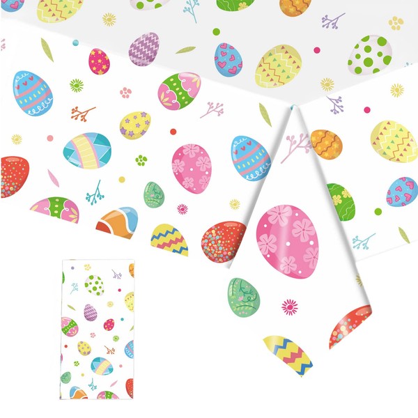 YAAVAAW 137 * 274cm Easter Tablecloth,Easter Party Decorations Tablecloth,Large Rectangular Eggs Pattern Easter Table Cover Plastic Table Cloth for Easter Party Supplies Table Decor