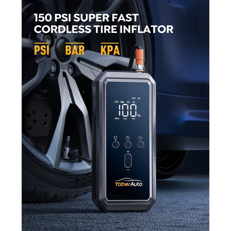 YaberAuto 8-in-1 Jump Starter with Air Compressor 5500A 150PSI Portable Car Battery Jump Starter (9L Gas/8L Diesel), 12V Jump Box Car Battery Jumper Starter Portable with Jumper Cables, 160W DC Out
