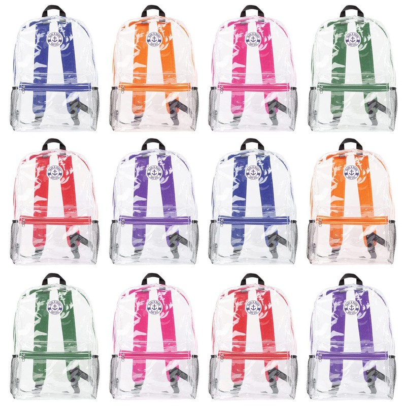 Wholesale Clear Transparent Backpacks In Colorful Options. 17 Inch In bulk Lightweight Outdoor Travel Gym Corporate Events Bag
