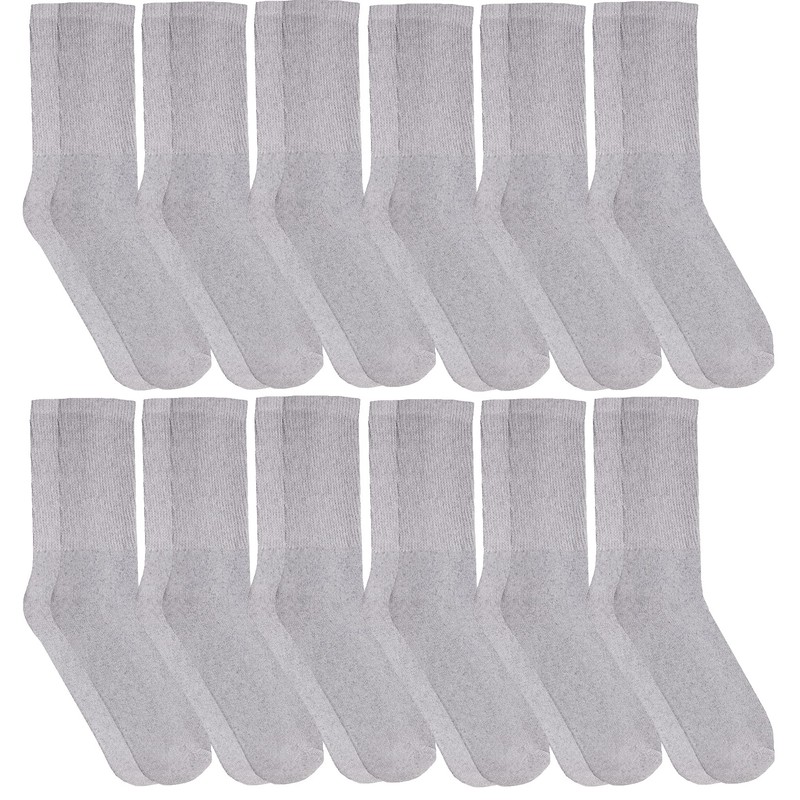 - 12 PACK OF GRAY CREW MENS SOFT COTTON DIABETIC SOCKS: Solid color diabetic crew socks. Lightweight and Non-Binding great for blood circulation. The loose-fitting style won’t constrict your legs and slips on easily over swollen ankles and feet. The absolute best pair of socks for people who suffer from diabetes and neuropathy. Perfect for recovery after surgery or long hospital stays.