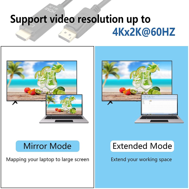 - DP to HDMI cable is a work from home must-have that supports resolutions up to 4K x 2K, superb clarity for view without lagging. Backward compatible with 1440P,1080P.
