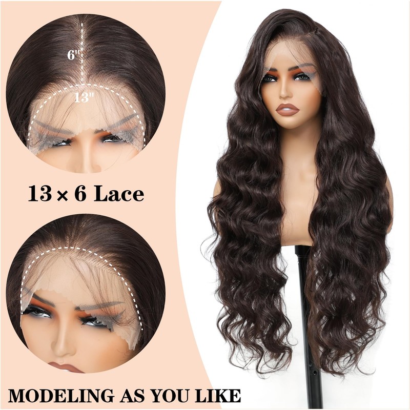 Yacurcur 13x6 Lace Frontal Wig Long Body Wave Wigs Transparent Swiss Lace Heat Resistant Synthetic Hair Pre-Plucked Hairline with Baby Hair Glueless Lace Front Wavy Wigs for Women 32 Inch (#Brown)