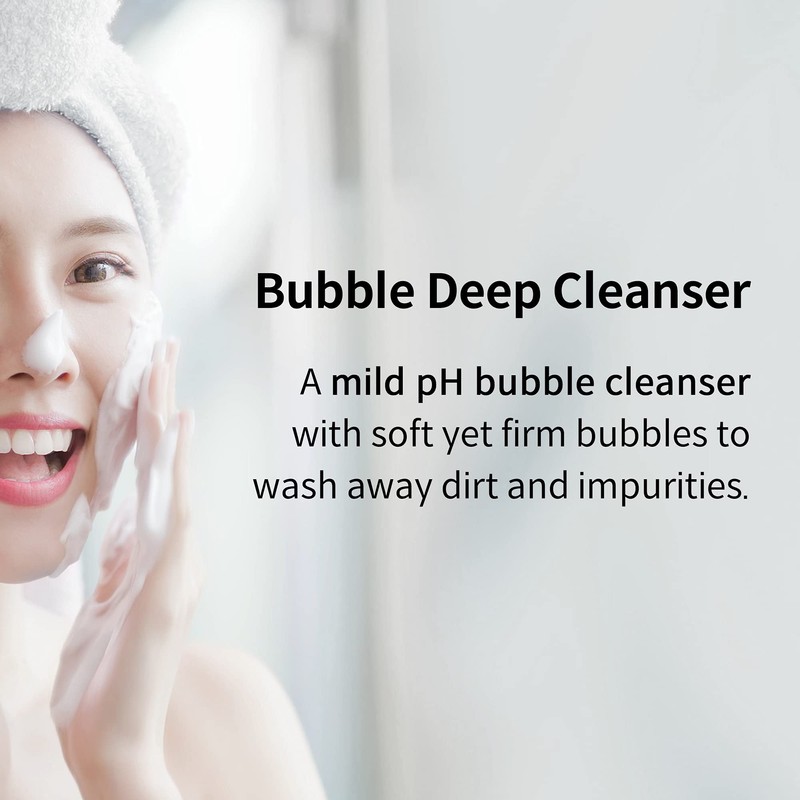 - BUBBLE CLEANSER whose slightly acidic micro bubbles clean the skin