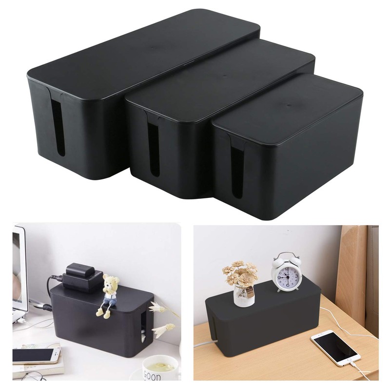YaeCCC Cable Management Organizer Box Power Strips Hider Power Cords Hider for Desk, TV, Computer, USB Hub,Cords (Set of Three) Black