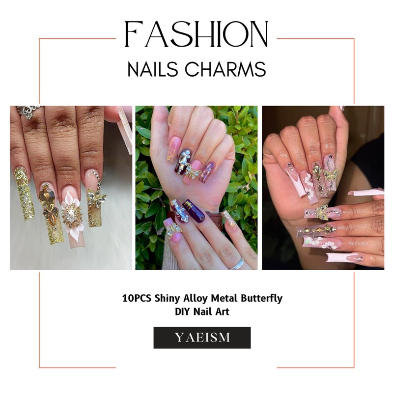 - Rhinestones Designs - You will get 10 pcs butterfly charms for nails, crystal alloy shining butterfly nail drill design to help you create dazzling nail arts.Make your nail to be charming