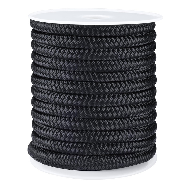 YaeMarine Double Braid Nylon Anchor Line Anchor Rope Marine Rope Black 3/8" x...