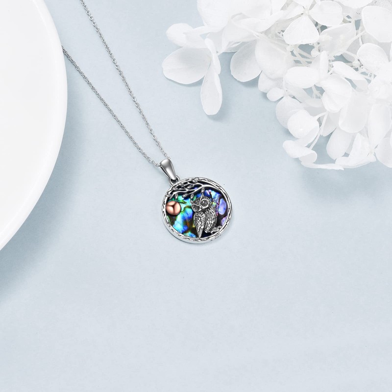 YAFEINI 925 Sterling Silver Owl Necklace for Women - Abalone Shell Pendant Jewellery Gift for Mum, Girls, Friend