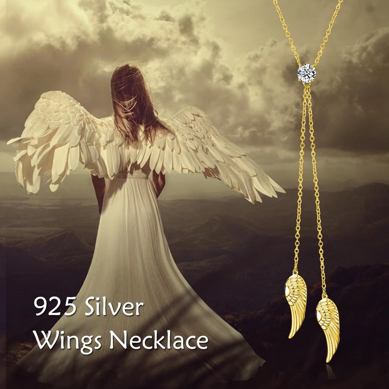 YAFEINI Angel Wings Y Chain Women's 925 Sterling Silver Birthstone Chain Guardian Angel Wing Pendant Necklace Gold/Rose Gold Angel Wings Jewellery Gift, Sterling Silver, Cubic Zirconia
