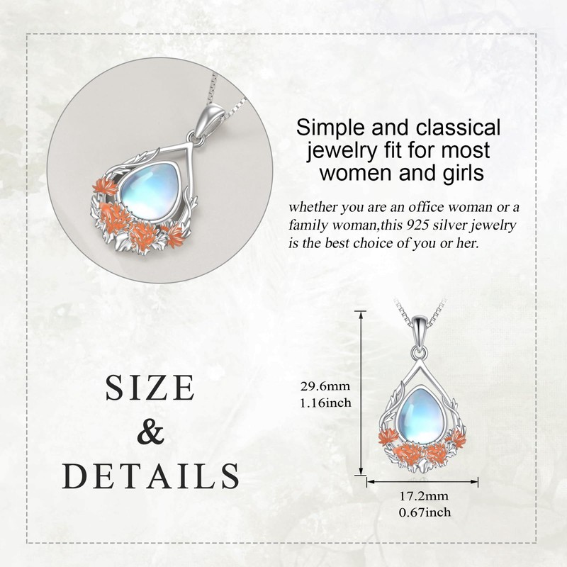 YAFEINI Birth Flower Necklace Hibiscus Sterring Silver Moonstone Pendant Gifts for Women Girls TearDrop Pendant Jewelry, 18+2, Sterling Silver, Moonstone