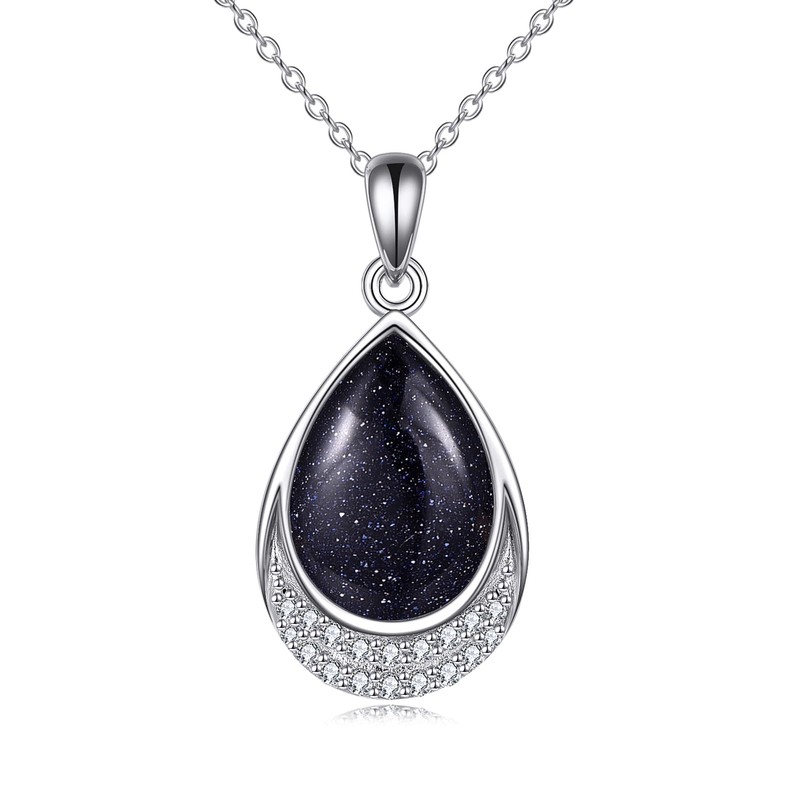YAFEINI Blue Sandstone Necklace 925 Sterling Silver Cubic Zirconia Teardrop Blue Sandstone Pendant Necklace Jewellery for Women Girls (E-Blue Sandstone)
