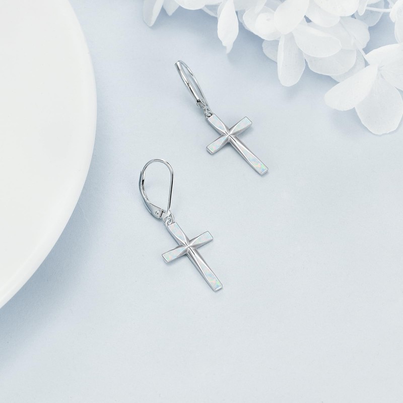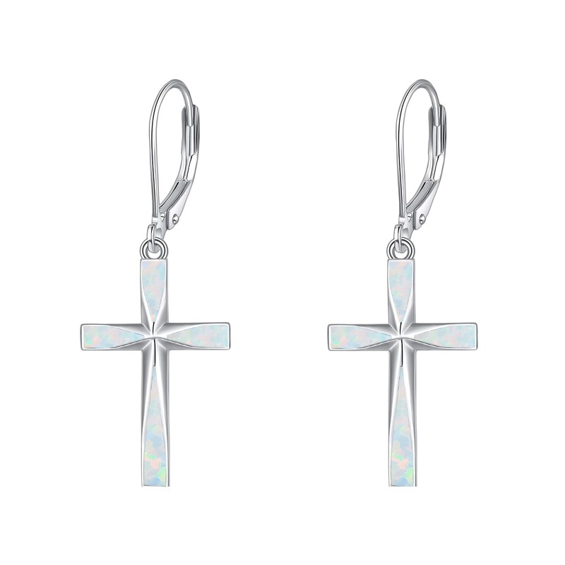 YAFEINI Cross Earrings 925 Sterling Silver Opal Dangle Drop Earring Cross Jewelry Gifts For Women Men