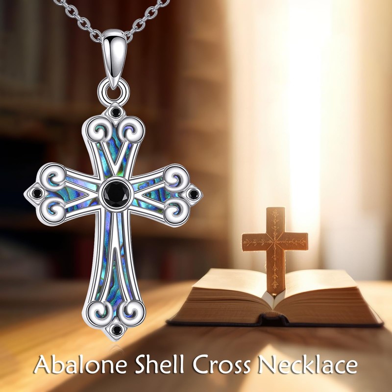 - 💎 Material 💎 The cross pendant is made of 925 sterling silver with no nickel, and no lead. The black circle is AAA cubic zirconia. The abalone shell is renowned for its iridescent beauty. (Every gemstone is different, so the color pattern will not be the same as the picture!)